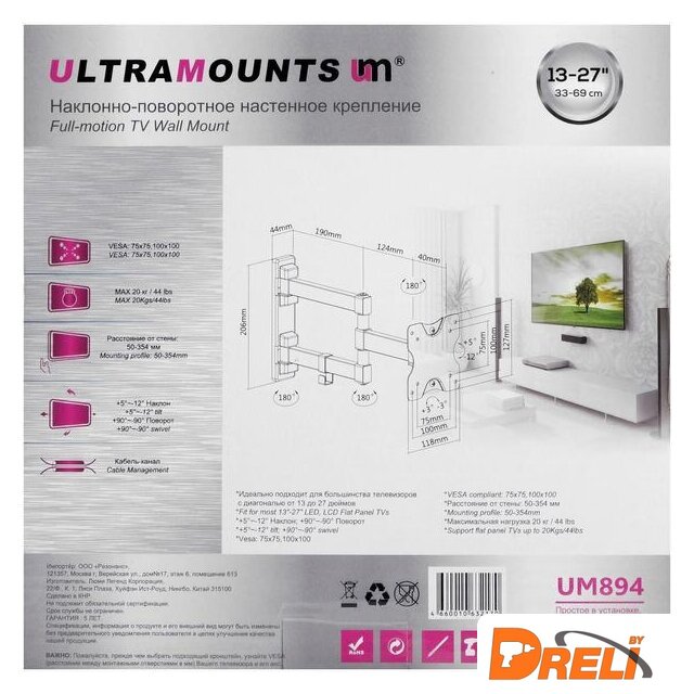 | Расстояние от стены (потолка) | 50 — 354 мм |