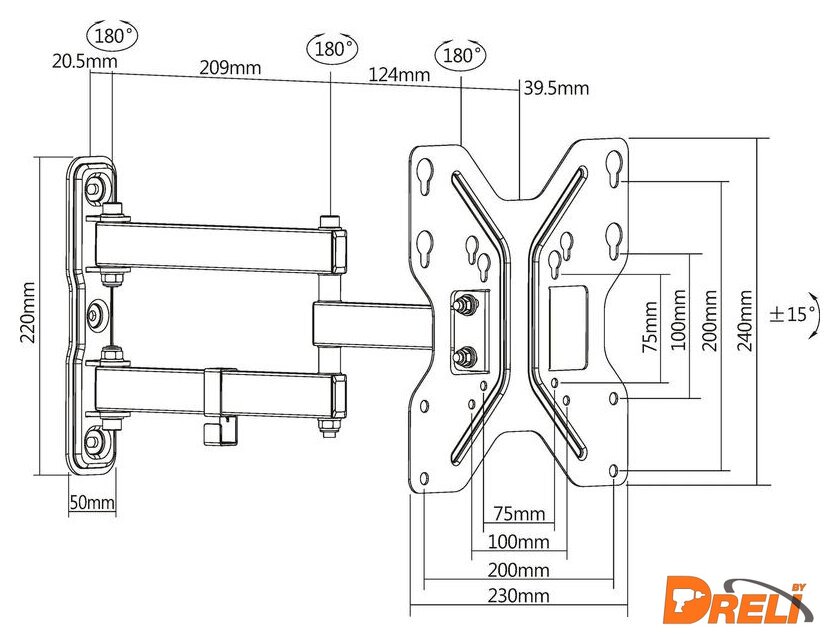 | Расстояние от стены (потолка) | 49 — 393 мм |