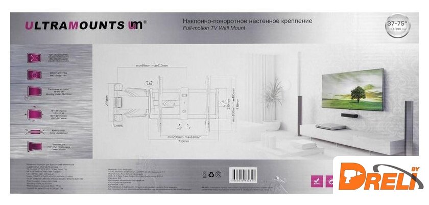 Совместим с телевизорами | 37 — 75 " |