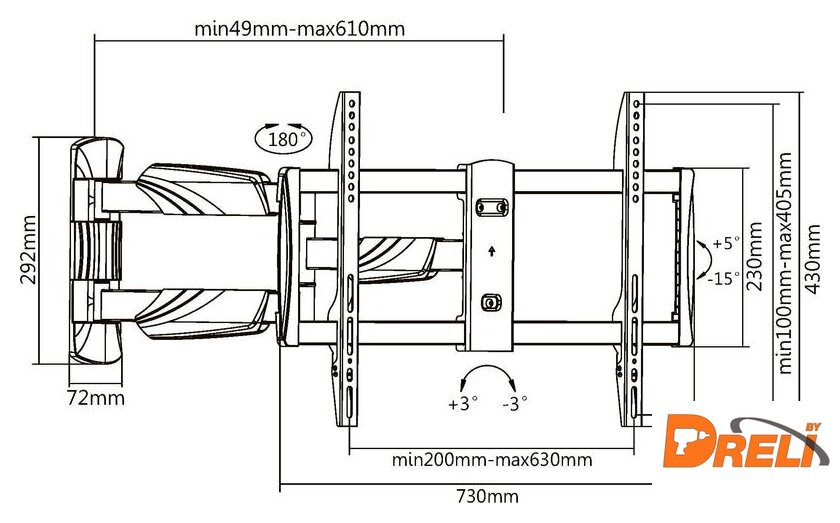 Расстояние от стены (потолка) | 49 — 610 мм |
