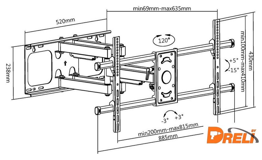 | Расстояние от стены (потолка) | 69 — 635 мм |