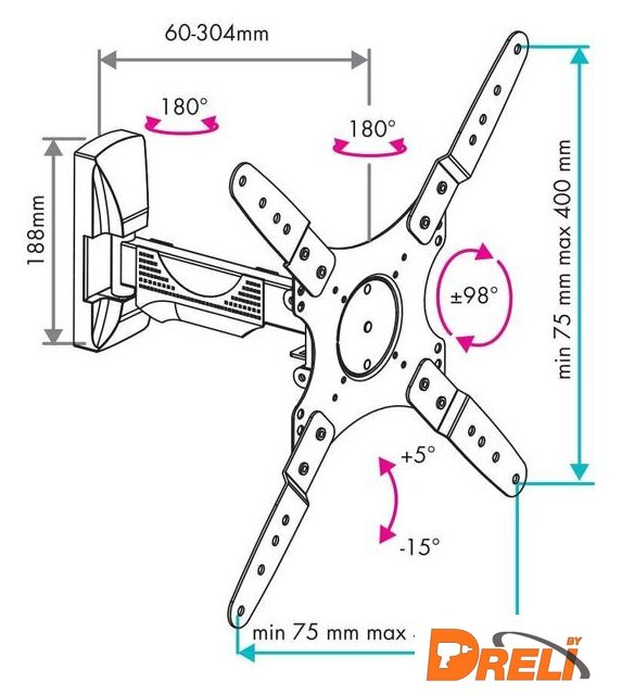 | Расстояние от стены (потолка) | 60 — 304 мм |