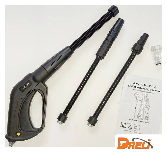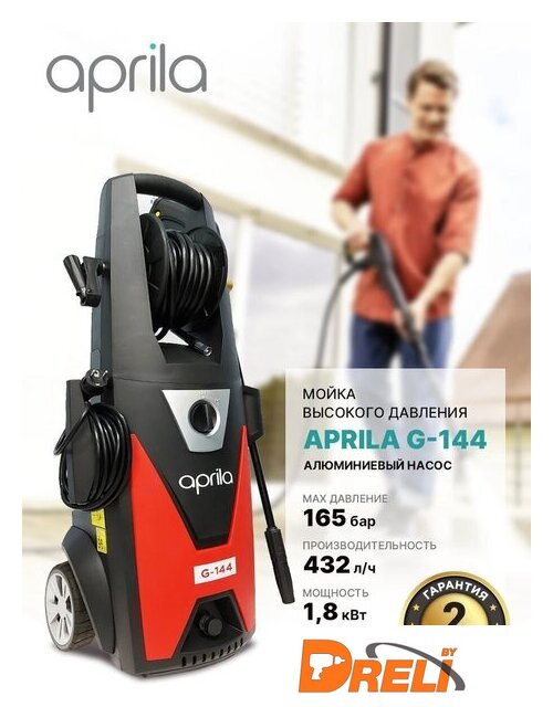 | Комплектация | - Мойка высокого давления Aprila G-144- Моечный пистолет с резьбовым соединением аксессуаров- Струйное копье с регулятором струи - Грязевая фреза- Комплект для чистки сопел струйной трубке- Фильтр тонкой очистки- Барабан для намотки шланга- Держатель для электрокабеля- Инструкция на русском языке |