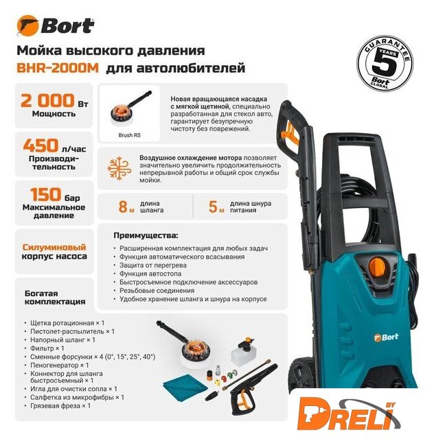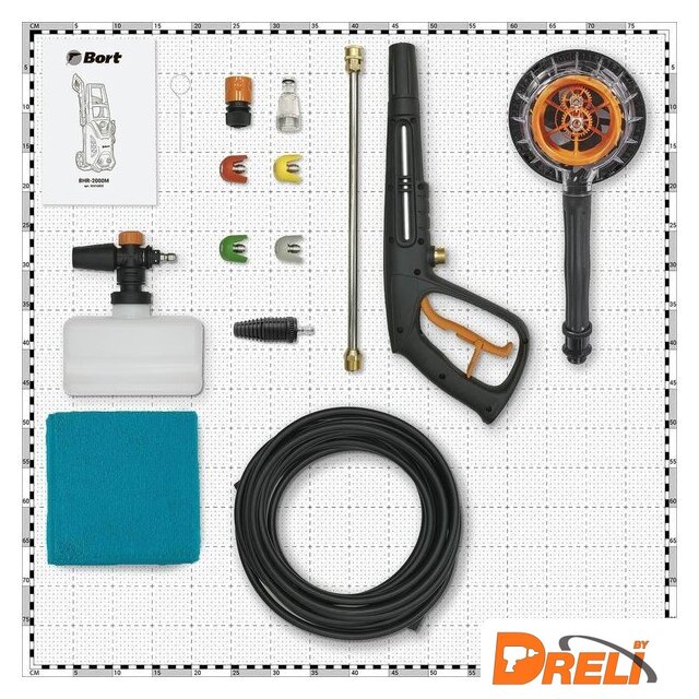| Комплектация | - Пистолет-распылитель (1 шт)- Напорный шланг (1 шт)- Фильтр (1 шт)- Сменные форсунки (4 шт)- Пеногенератор (1 шт)- Коннектор для шланга быстросъемный (1 шт)- Игла для очистки сопла (1 шт)- Салфетка из микрофибры (1 шт)- Грязевая фреза (1 шт)- Щетка ротационная (1 шт) |