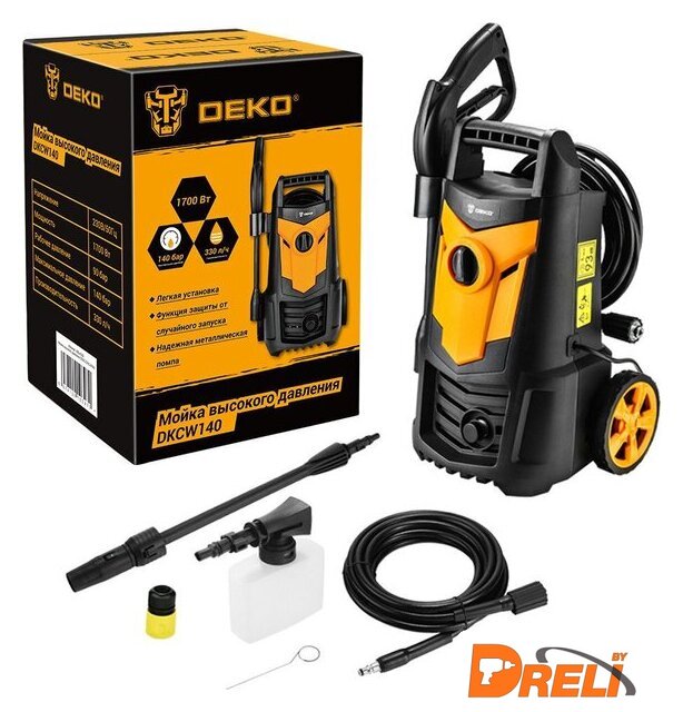 Комплектация | Мойка высокого давленияПистолет Шланг высокого давленияНасадка-распылитель Емкость для моющих средствИгла для прочистки распыляющего наконечникаИнструкция |