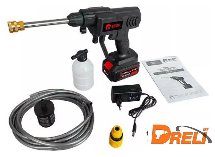 | Комплектация | - Мойка - 1 шт.;- Сопло сменное - 2 шт.;- Емкость для моющего средства - 1 шт.;- Фильтр грубой отчистки - 1 шт.;- Шланг с штуцером - 1 шт.;- Зарядное устройство - 1 шт.;- Аккумулятор емкостью 4 Ач. - 1 шт.;- Руководство по эксплуатации - 1 шт.;- Пластиковый кейс. |