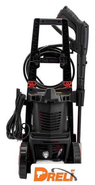 | Комплектация | - Корпус мойки высокого давления, - Быстрый разъем и фильтр (C), - Пистолет, - Крючок для шнура питания, - Регулируемая насадка, - Шланг высокого давления, - Крюк для шланга высокого давления, - Держатель пистолета, - Чистящая булавка, - Колеса, - Передняя декоративная пластина |