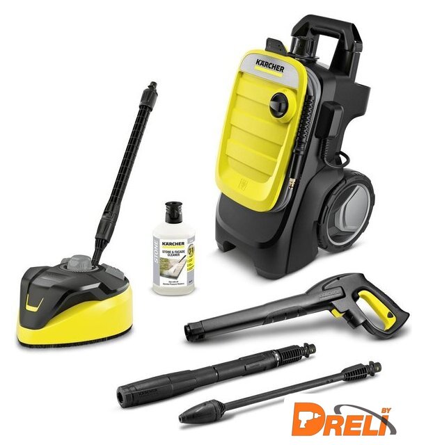 | Комплектация | - Комплект для уборки вокруг дома (Home Kit), присп. для очистки поверхн. T 7, ср-во для чистки камня и фасадов «3 в 1» (1 л);- Пистолет, G 180 Q;- Струйная трубка Vario Power;- Грязевая фреза;- Шланг высокого давления, 10 м;- Разъем Quick Connect на корпусе аппарата;- Система подачи чистящего средства, всасывающая трубка;- Телескопическая ручка;- Двигатель водяного охлаждения;- Встроенный фильтр для воды;- Адаптер для садового шланга A3/4". |