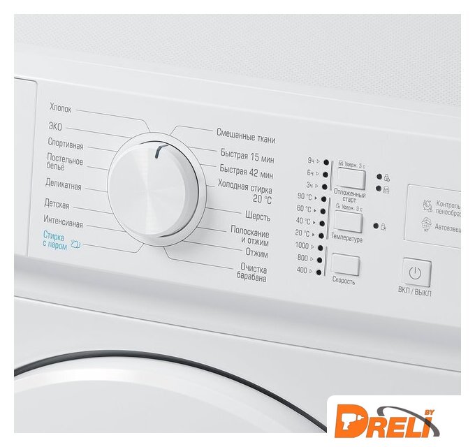 | Все программы | Хлопок, Деликатная, Интенсивная, Смешанные ткани, Быстрая 42/15 мин, Холодная стирка 20°С, Отжим, Шерсть, Полоскание и отжим, Очистка барабана, ЭКО, Детская, Постельное белье, Спортивная, Стирка с паром |