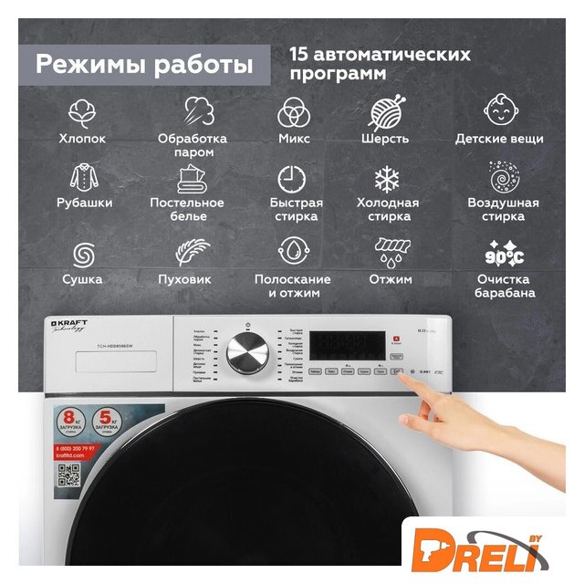| Все программы | ХлопокОбработка паромМиксДеликатная стиркаШерстьДетские вещиПуховикПостельное бельеБыстрая стиркаГипоаллергеннаяХолодная стиркаВоздушная стиркаСушкаПолоскание и отжимОтжимОчистка барабана |
