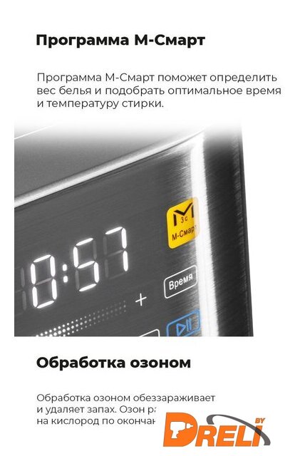 Оригинальные функции | М-Смарт - поможет определить вес белья и подобрать оптимальное время и температуру стирки. |