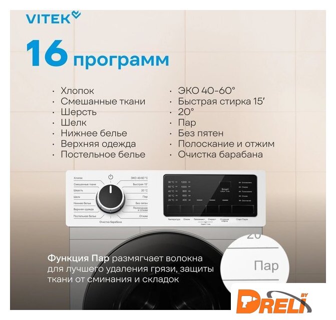 | Обработка паром | от ТЭНа стиральной машинки (имитация пара) |