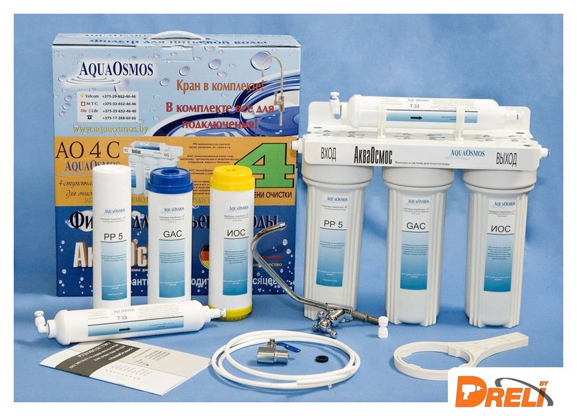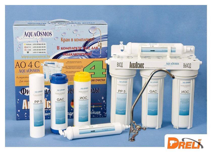| Описание фильтра | Фильтр для очистки воды АО 4 С обеспечивает защиту от сверхжесткой воды. Благодаря четырехступенчатой системе фильтрации фильтр убирает механические частицы (песок, ржавчина, ил, глина и т. д.), хлор, пестициды, органические и неорганические соединения, вирусы и бактерии. Удаляет неприятные запахи, посторонние привкусы, улучшает вкус и качество воды. Благодаря картриджу ИОС (ионообменная смола) фильтр справляется с солями жесткости. Устраняет накипь, обессоливает и умягчает воду. В комплектацию входят сам фильтр, комплект картриджей, кран для чистой воды и полный набор для легкого подключения фильтра собственными силами. |