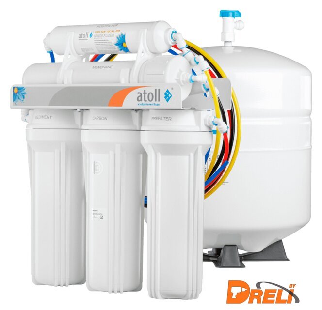Прочее | Первые три ступени очистки осуществляются префильтрами: механическая очистка воды — картриджем atoll P5 из полипропилена. Задерживает примеси >5 мкм; сорбционная очистка — картриджем atoll GAC-10 (гранул.уголь) удаляет из воды хлор, улучшает органолептические свойства воды; тонкая механическая очистка — картриджем atoll P1 из полипропилена. Служит для удаления грязи и нерастворимых частиц >1 мкм.После предварительной фильтрации вода в atoll A-550m STD проходит следующие уровни очистки: полиамидная тонкопленочная мембрана atoll TW40-1812-50 - очищает воду от 99,9% вредных примесей, таких как: тяжелые металлы, органические и неорганические соединения, бактерии и вирусы. Пропускает через себя только молекулы воды и кислорода; постфильтрация - минерализатором atoll GS-10CAL/RO. Он добавляет микроэлементы в очищенную воду, делает ее ещё вкуснее и нормализует значение рН. |