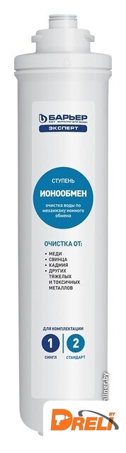 | Описание фильтра | Комплект компактных сменных картриджей для фильтров. Применяется в трехступенчатых системах водоочистки «Эксперт Стандарт» для комплексной очистки водопроводной воды от основных содержащихся в ней вредных примесей.Вторая ступень - ИонообменПодходит ко всем фильтрам линейки БАРЬЕР Эксперт. |