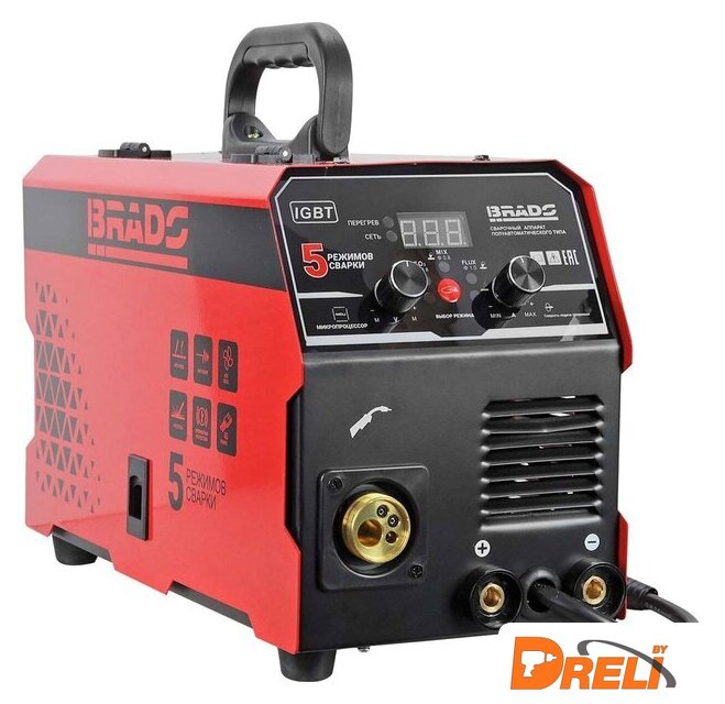 | Комплект поставки | - горелка (еврорукав 3 м), - кабель заземления (массы) (1.8 м), - кабель с электрододержателем (1.8 м) |