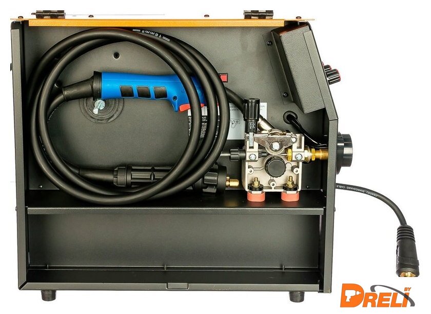 | Комплект поставки | Инвертор — 1 шт.Горелка MIG-15 (3м) — 1 шт.Зажим на массу с кабелем 1,5м — 1 компл.Шланг газовый — 3мКомплект ЗИП (сопло Ø 12мм; наконечники Ø 0.8 — 2шт, Ø 1.0 — 2шт; хомуты — 2шт; болты для крепления ручки; ключ; ручка; ролик 0.8/1.0) |