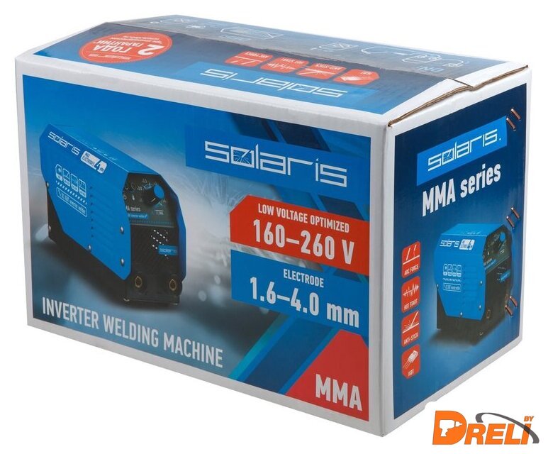 Комплект поставки | - Сварочный аппарат;- Электрододержатель с кабелем 2 метра;- Клемма заземления с кабелем 2 метра;- Ремень транспортировочный;- Инструкция;- Коробка. |