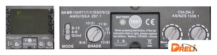 Диапазон затемнения светофильтра | 4 — 13 DIN (DIN4-DIN8 для сварки на малых токах, DIN9 - DIN13 для стандартных сварочных задач) |
