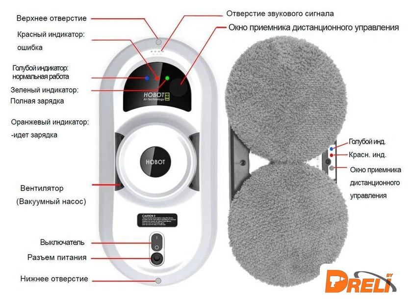 Комплектация | Робот Hobot-368Страховочный шнур (прикреплен к роботу)Пульт дистанционного управленияАдаптер питания (100 ~ 240 В, 50 ~ 60 Гц)Удлинитель постоянного тока (4 метра)Чистящие салфетки из микрофибры — 14 шт.Запасные кольца для салфеток — 2 шт. |