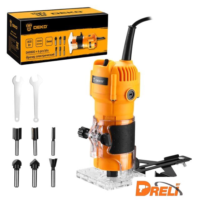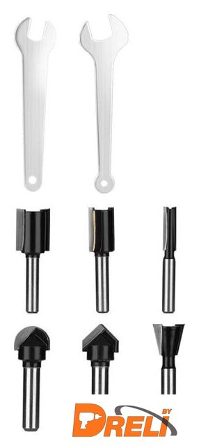 Комплектация | - Фрезер - 1 шт.- Параллельный упор (упор, параллельная направляющая, винт и барашковая гайка, кронштейн упора, зажимной винт) 1 шт гаечный ключ - 2 шт.- Фрезы (3 шт: пазовая прямая D6хH20мм,D12хH20мм,D16хH20мм; 1 шт: пазовая галтельная D12.7x6.35мм; 1 шт: пазовая конструкционная «ласточкин хвост» D12.7,Angle-14; 1 шт: пазовая V-образная D12.7,Angle-14)- Угольные щетки - 2 шт.- Руководство по эксплуатации- Коробка |