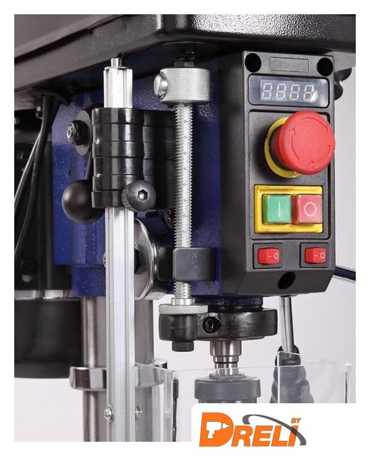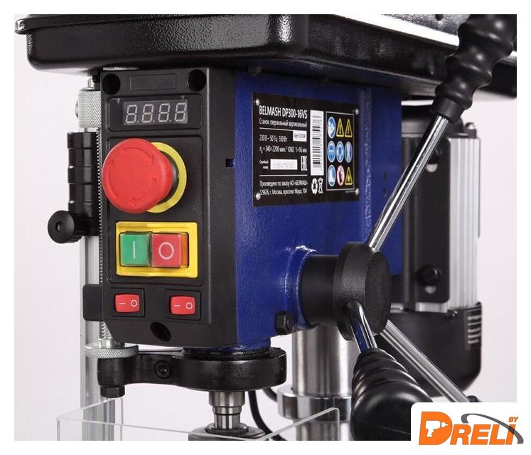 Комплект поставки | - Сверлильная головка в сборе;- Основание станка;- Стол рабочий в сборе с подвижным расширением;- Колонна с рейкой и кронштейном стола в сборе;- Патрон сверлильный;- Экран защитный;- Направляющая экрана защитного;- Выколотка (расклиниватель);- Рукоятка-фиксатор - 2 шт;- Рукоятка регулировки скорости;- Рукоятка подачи - 3шт;- Рукоятка подъема - опускания стола;- Тиски (76,2 мм);- Ключ шестигранный - 3 шт;- Комплект крепежа;- Руководство по эксплуатации;- Упаковка. |