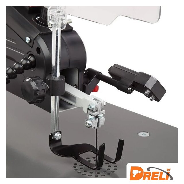 | Комплект поставки | - Станок в сборе- Полотно пильное со штифтом, (Д×Ш×Т) 133×3,0×0,3 мм; 18 TPI- Ключ T-образный специальный HEX 3- Экран защитный- Кожух пылезащитный- Патрубок на 90°- Переходник к патрубку- LED-подсветка- Винт с головкой под крестообразную отвертку и пружинная шайба- Контргайка- Комплект крепежа- Руководство по эксплуатации- Упаковка |
