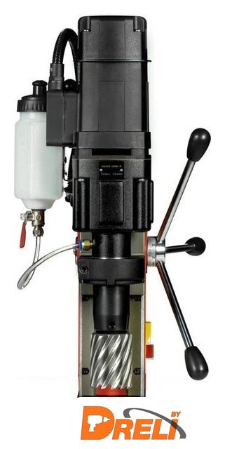 | Комплект поставки | Магнитный сверлильный станок.Ручки - 3 шт.Комплект шестигранных ключей 2.5, 3, 4, 5 мм.Бачок для СОЖ.Страховочная цепь.Инструкция с гарантийным талоном.Пластиковый кейс. |