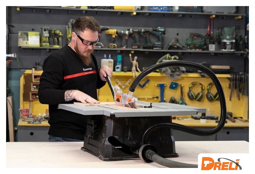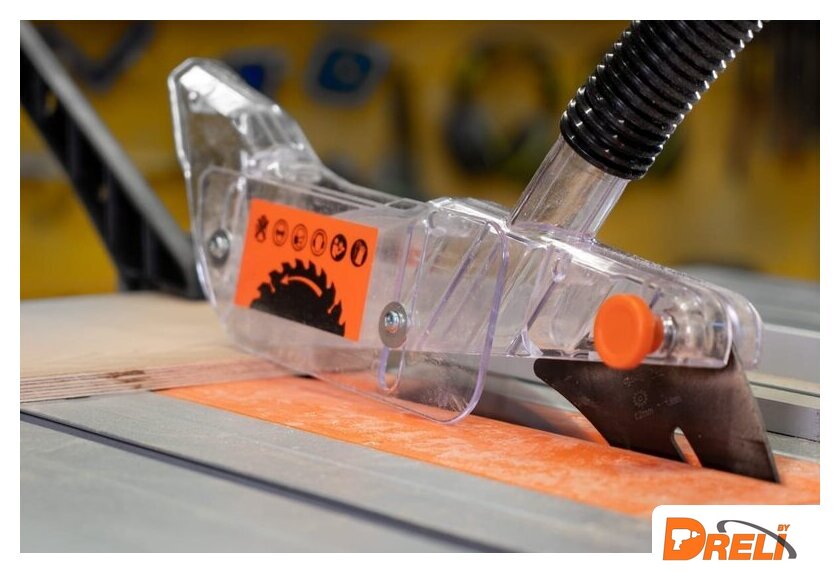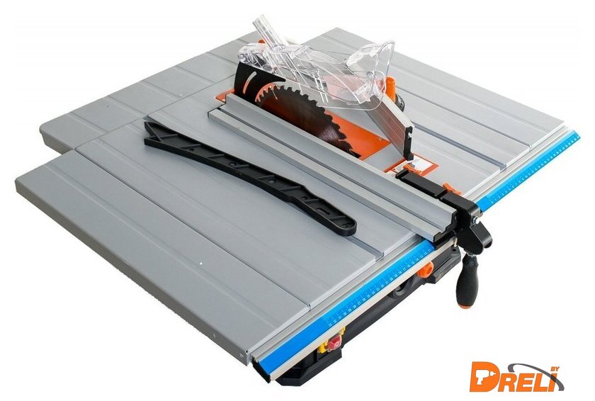 | Комплект поставки | Распиловочный станокПереходник пылеуловителя – 1 шт.Левый и правый удлинители рабочей поверхности – 2 шт.Предохранительный клин – 1 шт.Передняя шина – 1 шт.Угловой упор – 1 шт.Кожух пилки – 1 шт.Шланг для сбора пыли – 1 шт.Удлинитель рабочей поверхности – 1 шт.Кронштейн шланга – 1 шт.Направляющая планка – 1 шт.Гофрированный винт – 2 шт.Ручка фиксации направляющей планки – 1 шт.Направляющая линейка – 1 шт.Ключ пильного полотна – 2 шт.Плоская шайба – 15 шт.Пружинная шайба –13 шт.Шестигранные гайки М6 – 7 шт. |