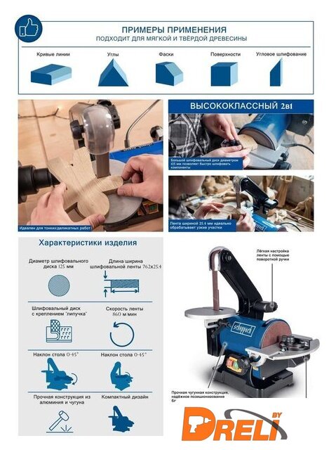 | Комплект поставки | - Ленточная и дисковая шлифовальная машина- Стол для шлифовальной ленты- Всасывающее отверстие для ленточных шлифовальных машин- Поперечный режущий калибр- Регулируемый шлифовальный стол- Зажимной винт М6 2 шт.- Шайба Ø6 2 шт.- Крестообразный винт M4x10 3 шт.- Шайба Ø4 3 шт.- Зажимной рычаг M8 1 шт.- Шайба Ø8 1 шт.- Руководство по эксплуатации |