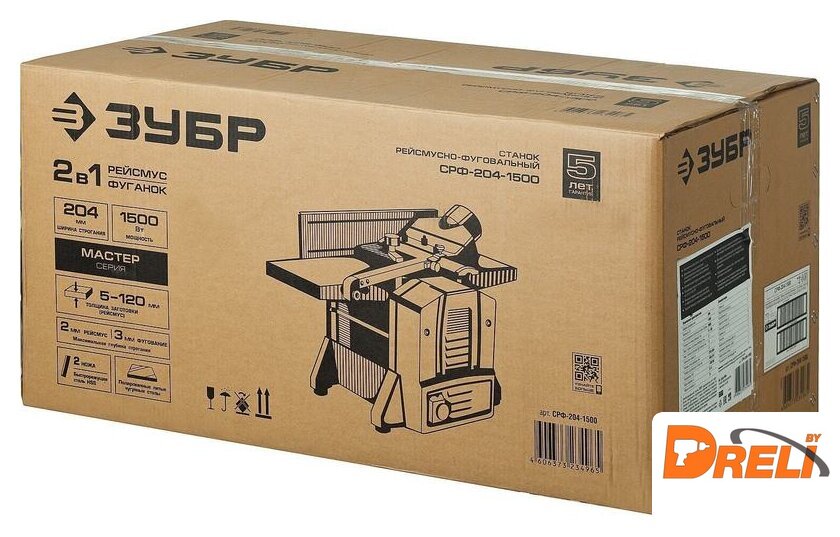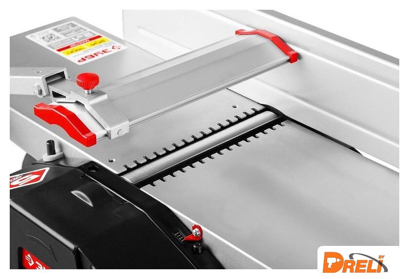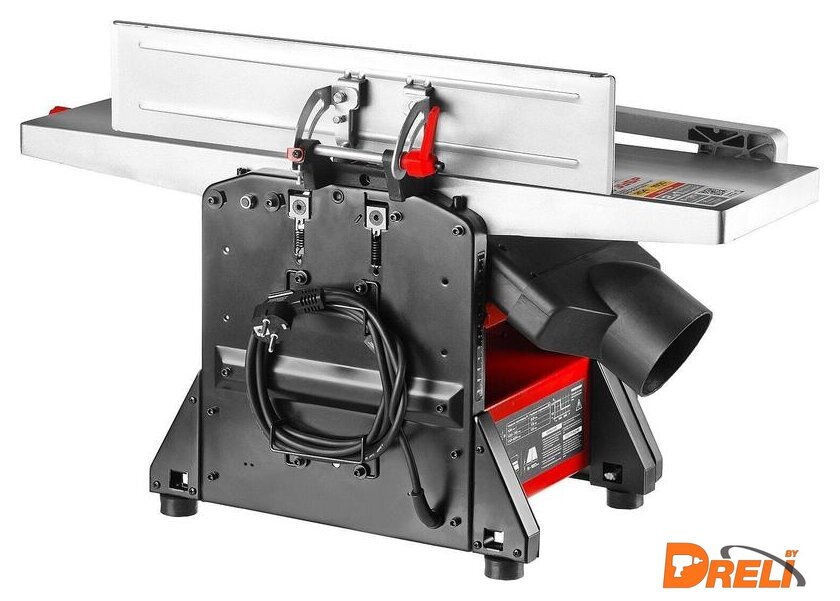 Комплект поставки | - Станок;- Параллельный упор с креплением;- Защитная планка с кронштейном;- Пылесборник;- Рукоятка;- Фиксатор;- Шаблон для установки ножей;- Толкатель;- Прижим - 2;- Набор ключей;- Резиновая опора - 4;- Набор крепежа;- Руководство по эксплуатации. |
