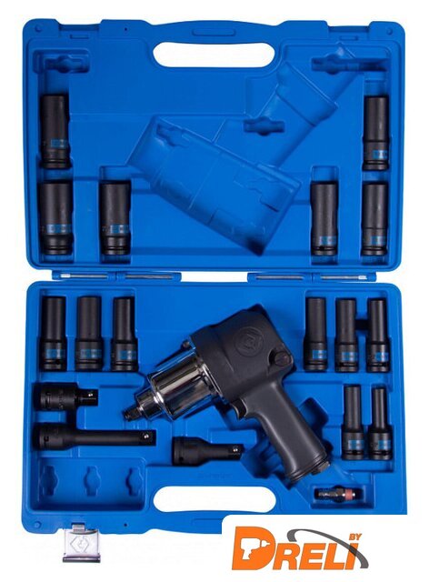 | Комплектация | - Гайковёрт пневматический ударный (арт. 33411-050);- Головки ударные глубокие 8, 10, 12, 13, 14, 15, 16, 17, 18, 19, 21, 22, 24, 27 мм (серия 4435M);- Удлинитель ударный 125 мм (4260-05P);- Удлинитель ударный 75 мм (4260-03P);- Кардан ударный шаровый 60 мм (4799P);- Штуцер БРС (SY-211M);- Инструкция по эксплуатации; -Кейс из пластика PE-HD. |