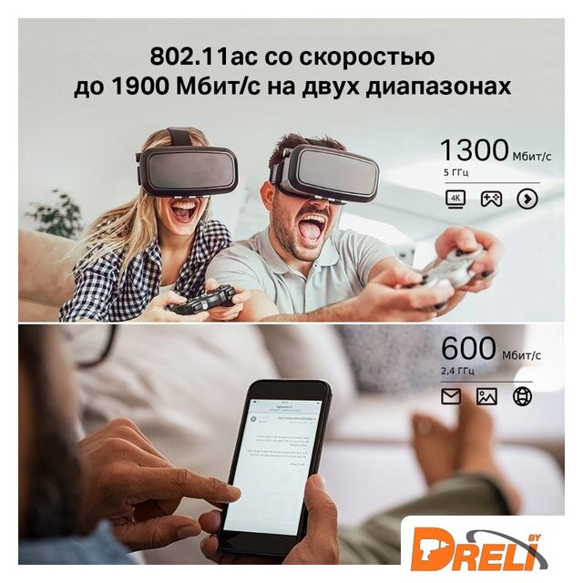 | Скорость 5 ГГц | 1300 Мбит/с (802.11ac) |