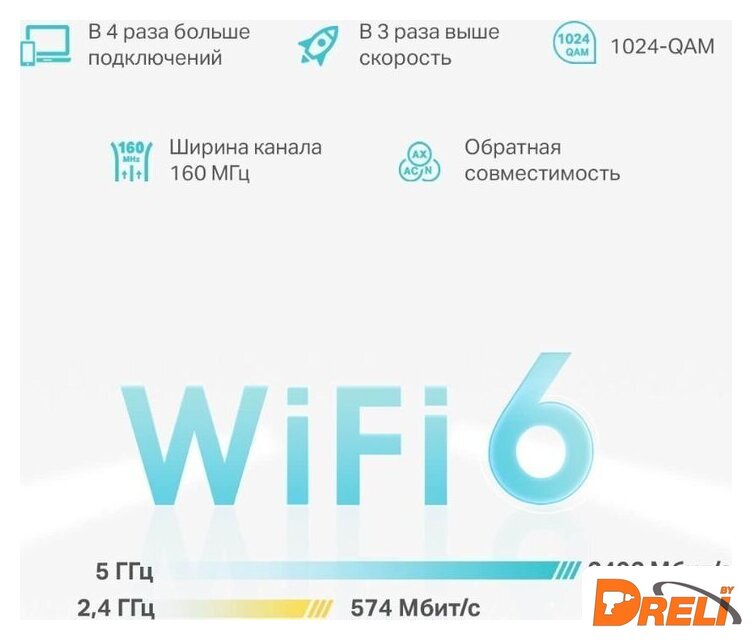 802.11ax (Wi-Fi 6), 2.4 ГГц/5 ГГц, до 2976 Mbps, WAN