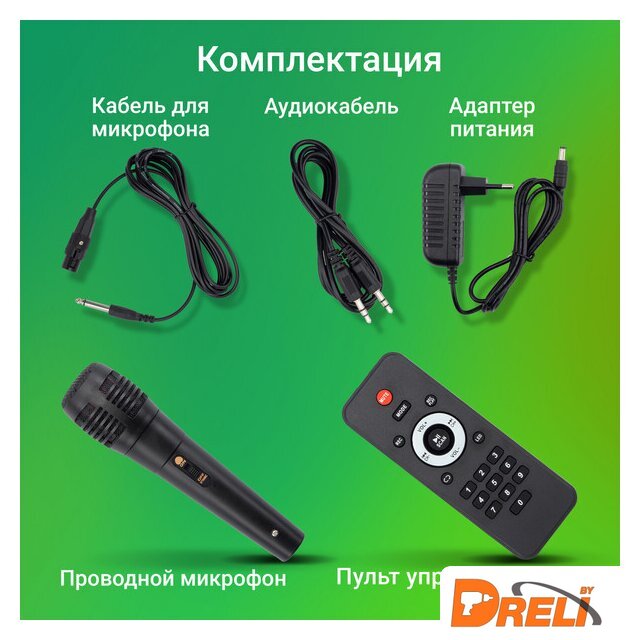 Комплектация | - кабель питания - аудиокабель- пульт д/у- проводной микрофон - документация |