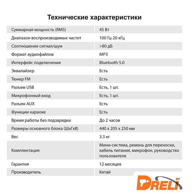 | Номинальная мощность (RMS) | 45 Вт |